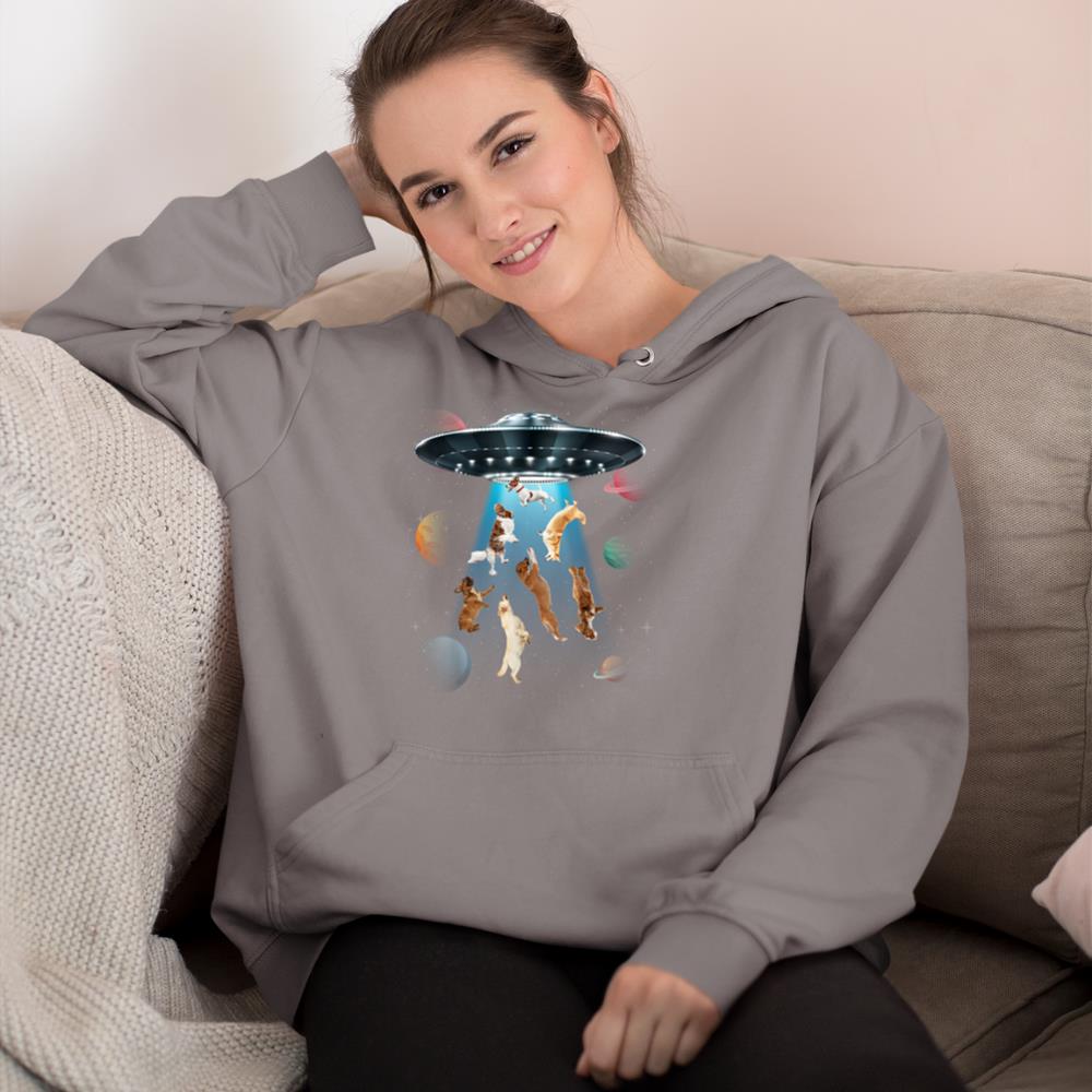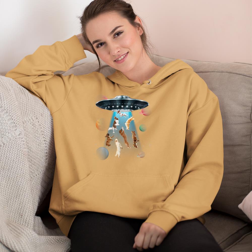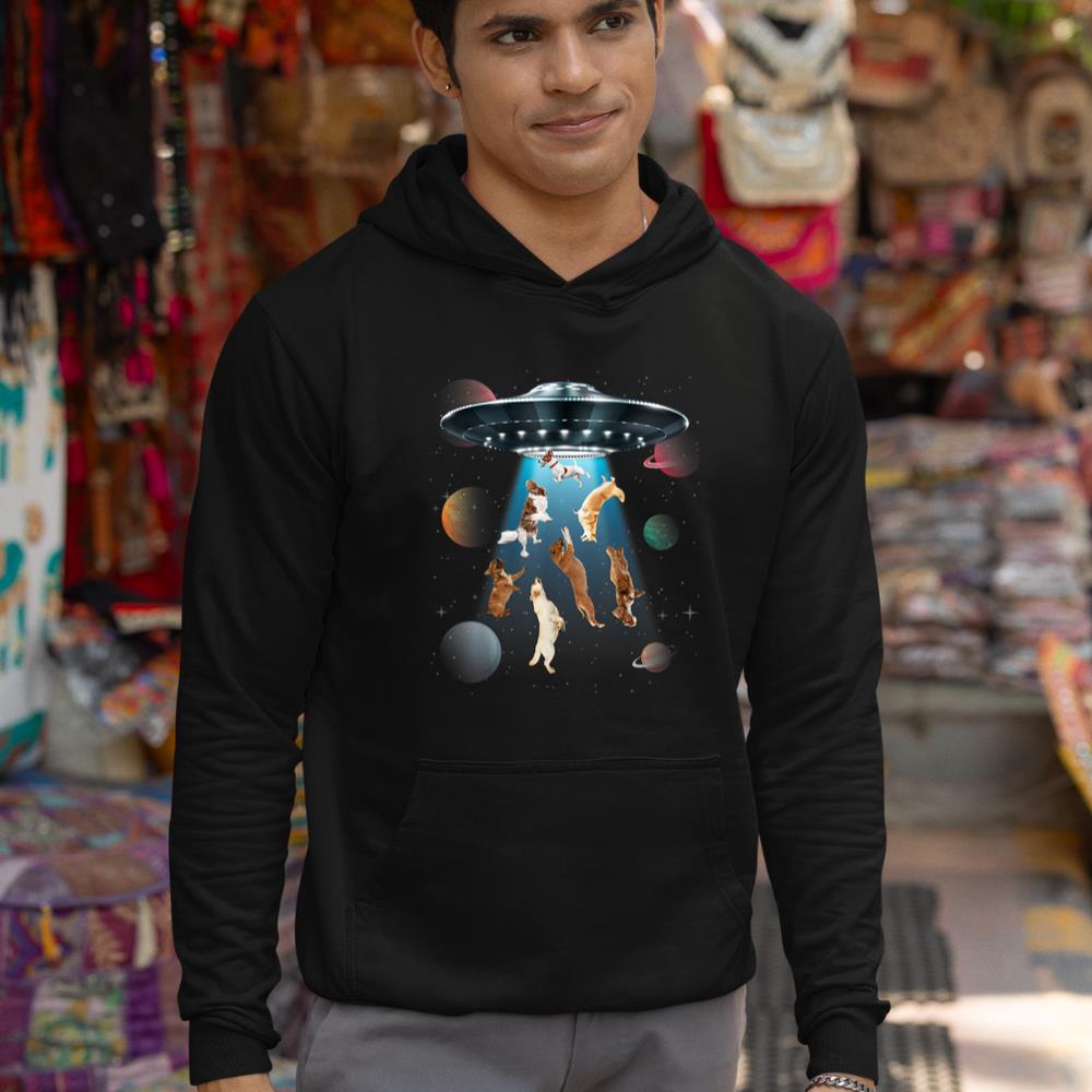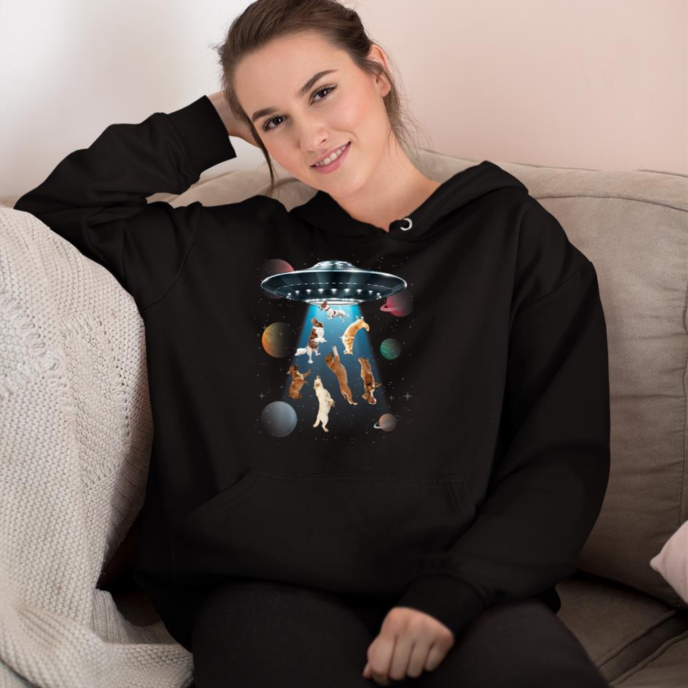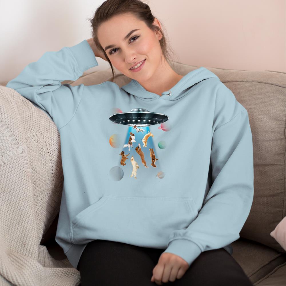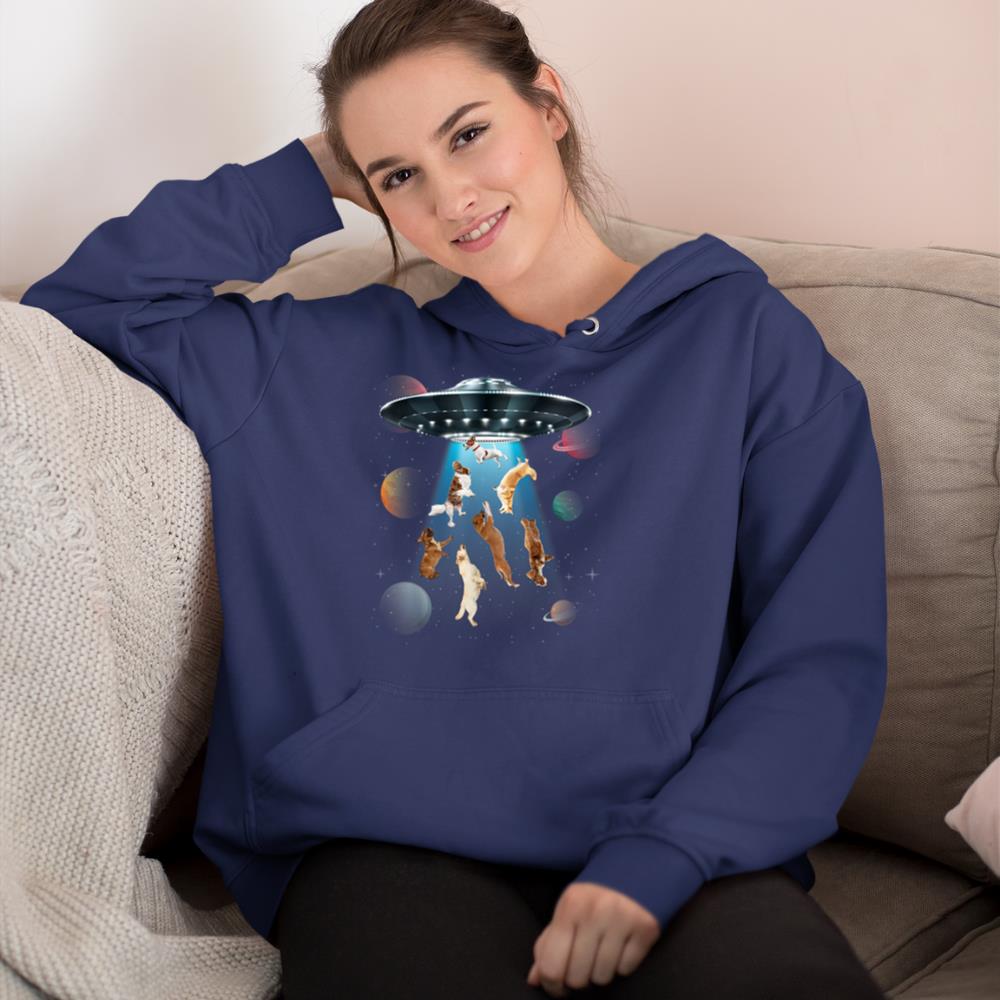 Funny dogs in space aliens ufo abduction planets galaxy Hoodie