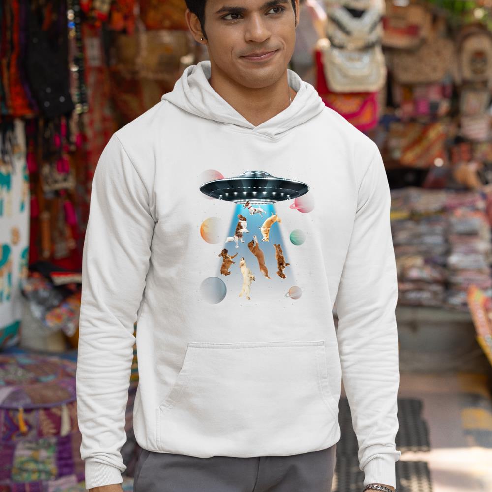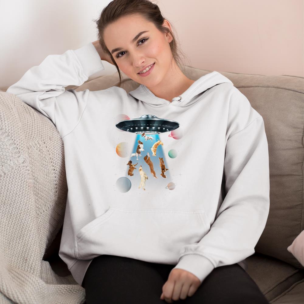 Be the first to review “Funny dogs in space aliens ufo abduction planets galaxy Hoodie”