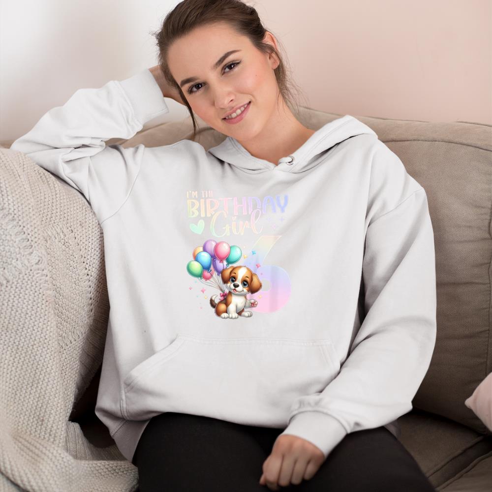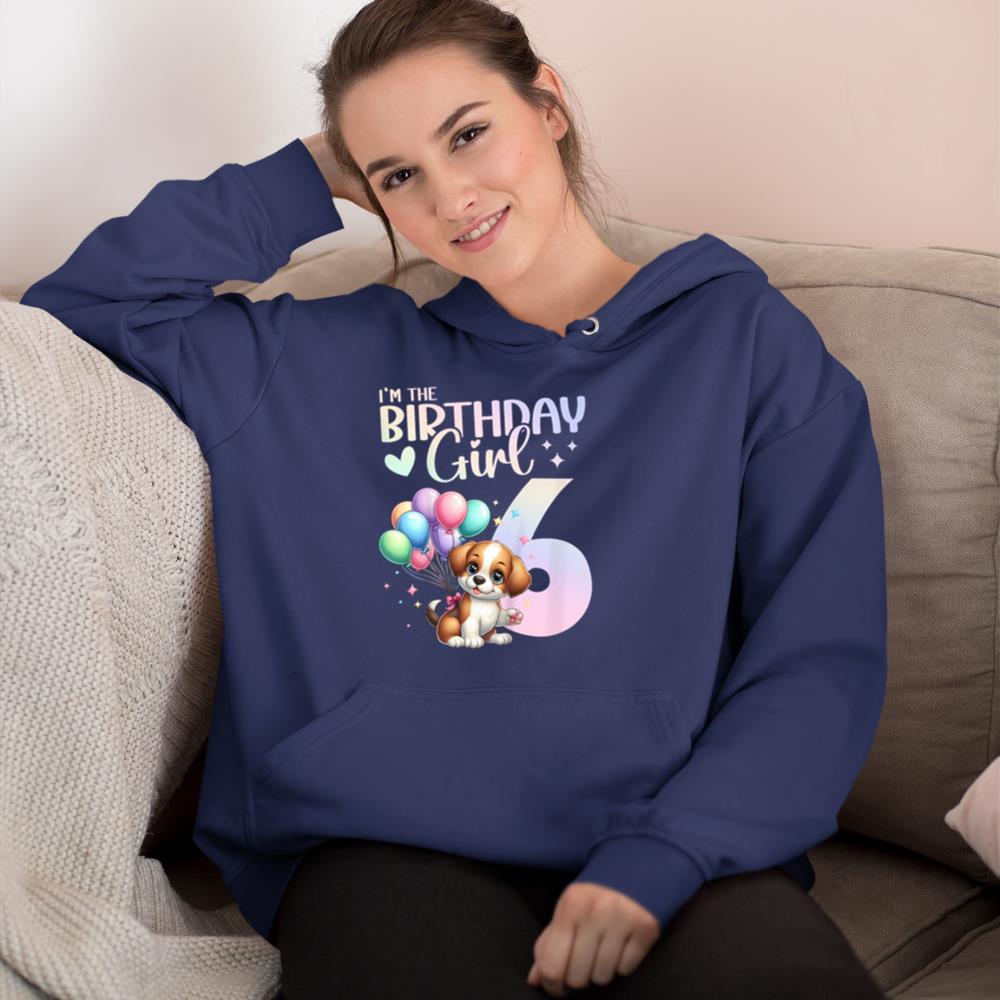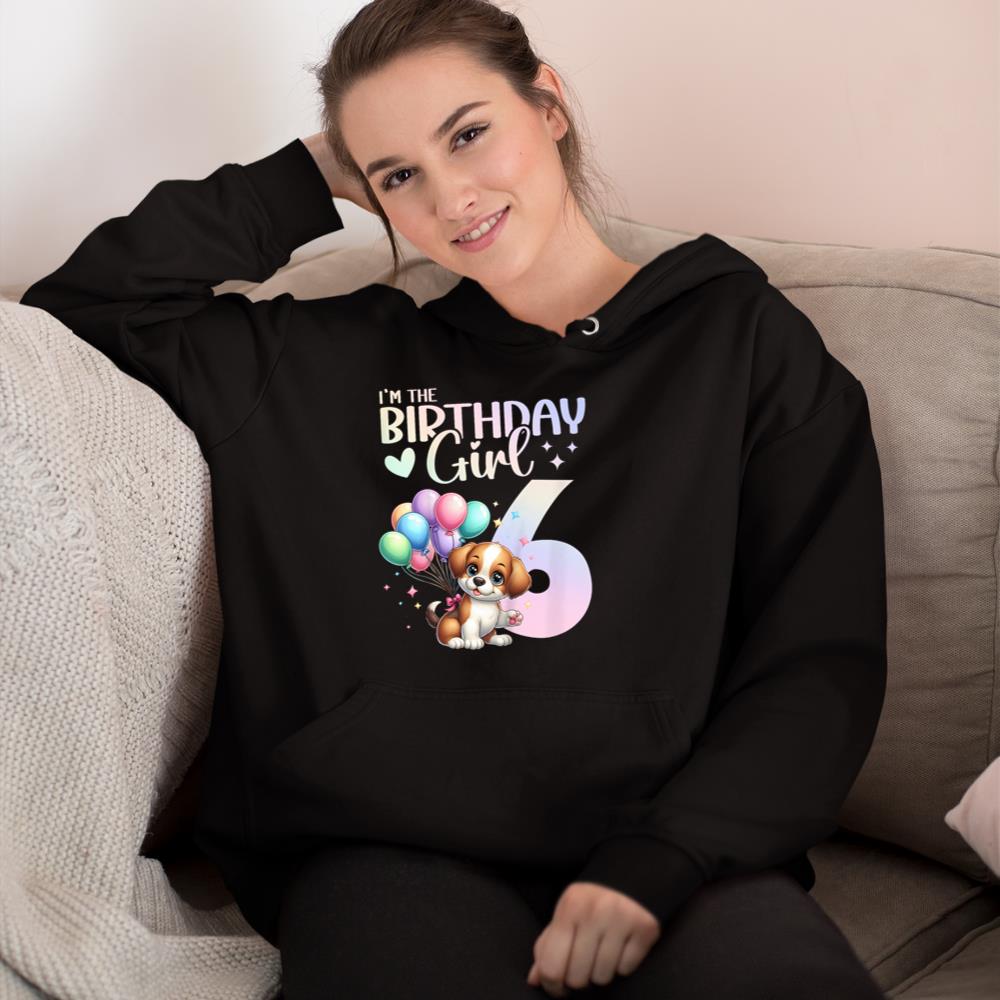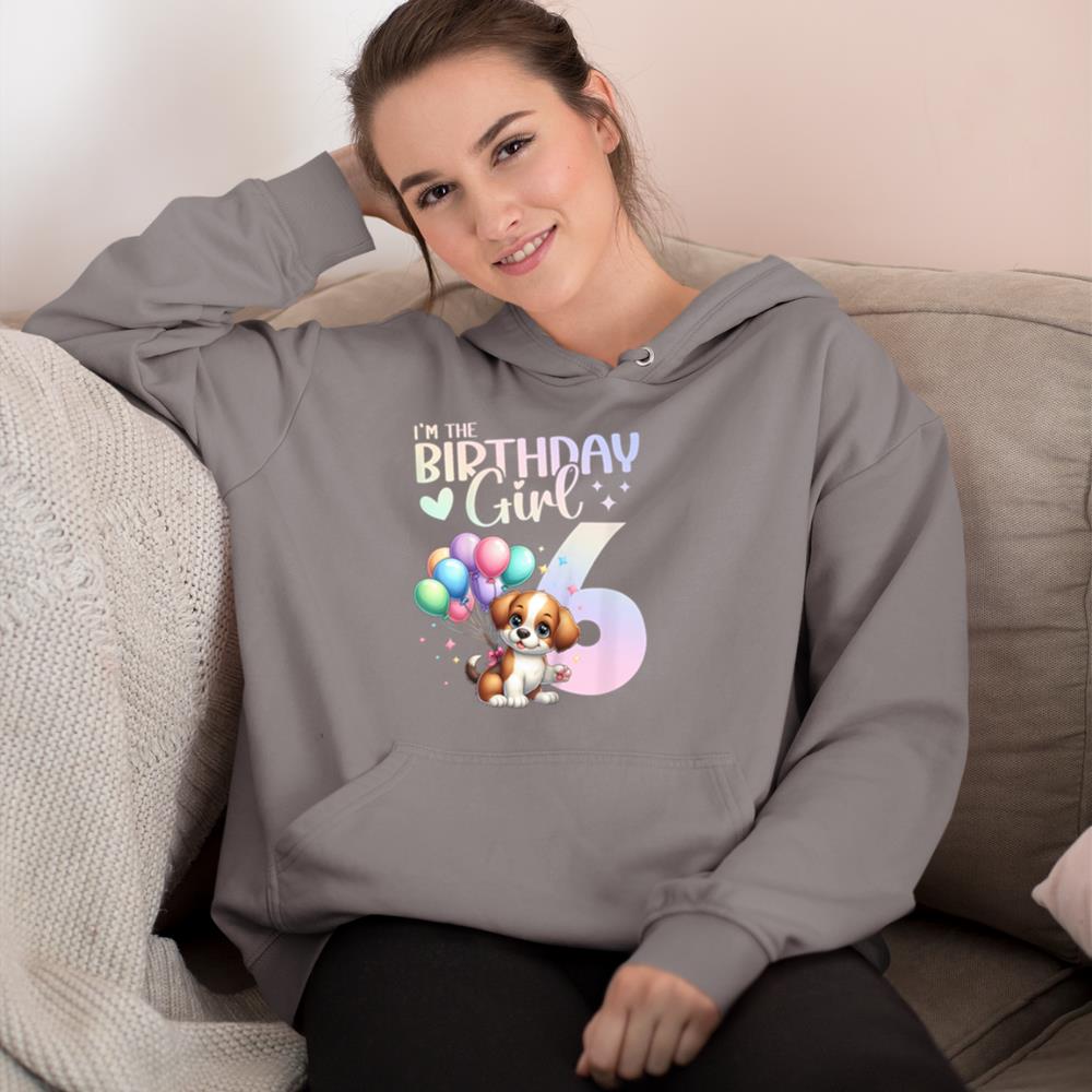 Kids 6th Birthday Girl Dog Cute 6 Years Old Six 6 Birthday Hoodie