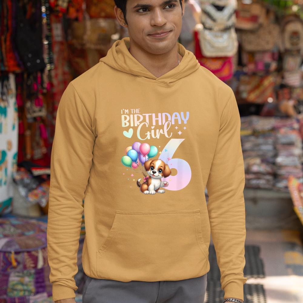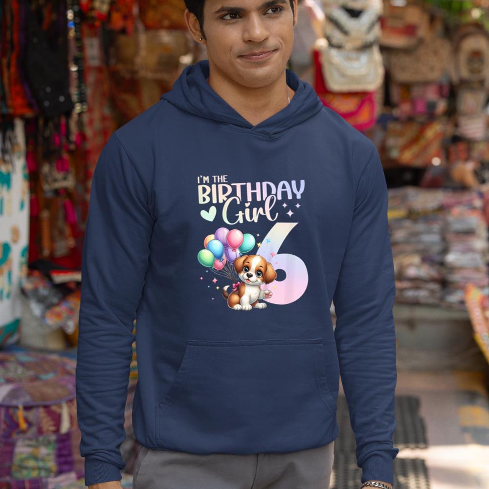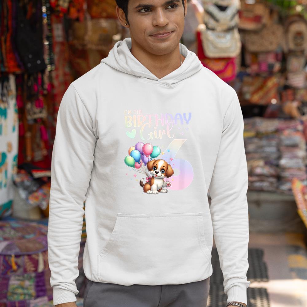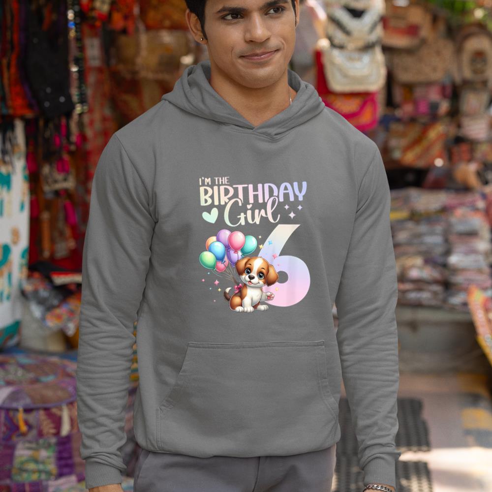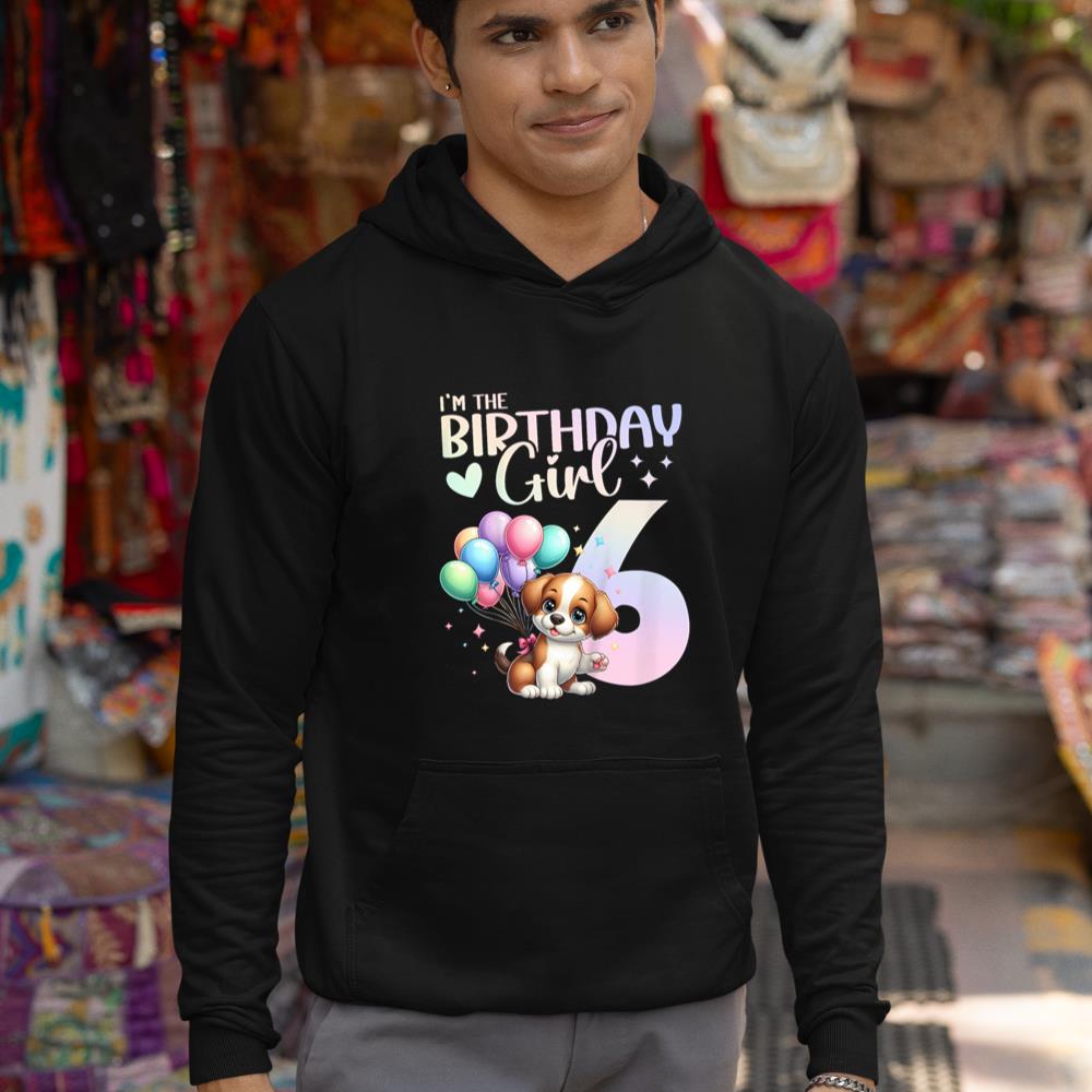 Kids 6th Birthday Girl Dog Cute 6 Years Old Six 6 Birthday Hoodie