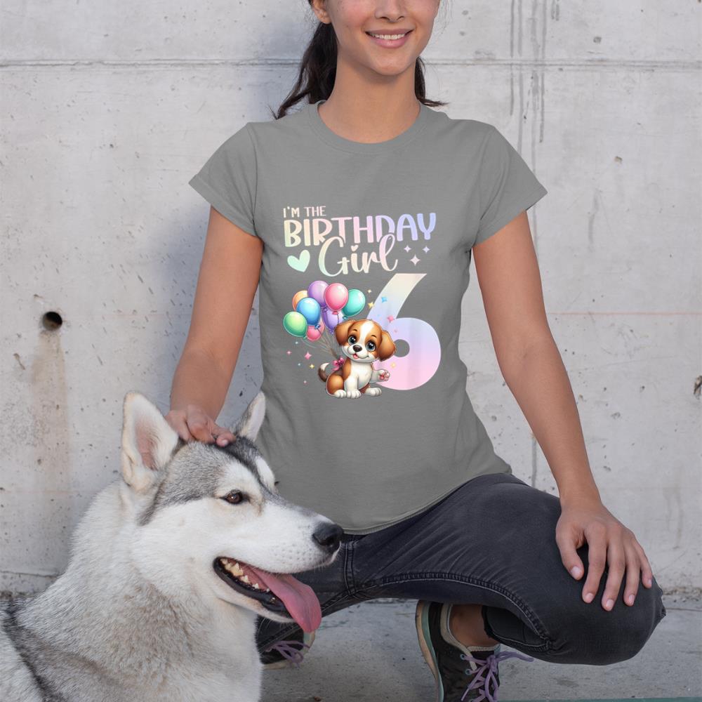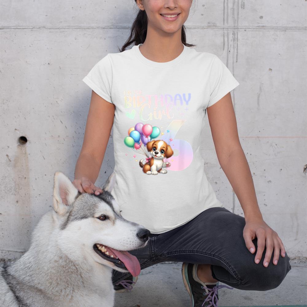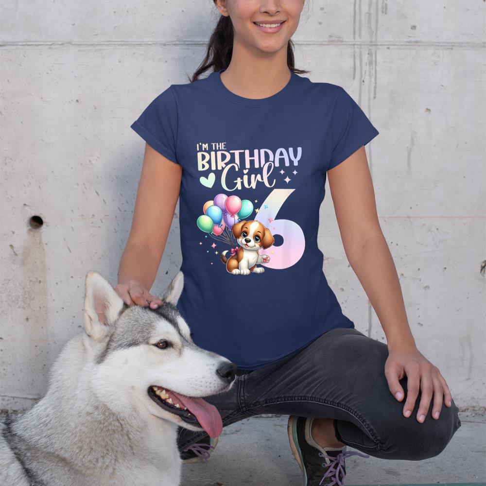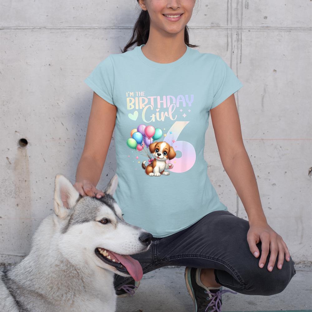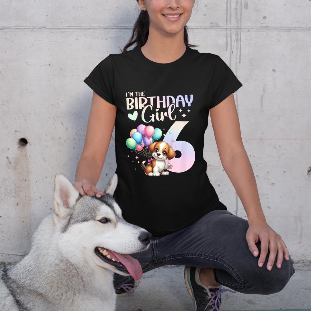 Kids 6th Birthday Girl Dog Cute 6 Years Old Six 6 Birthday T-Shirt