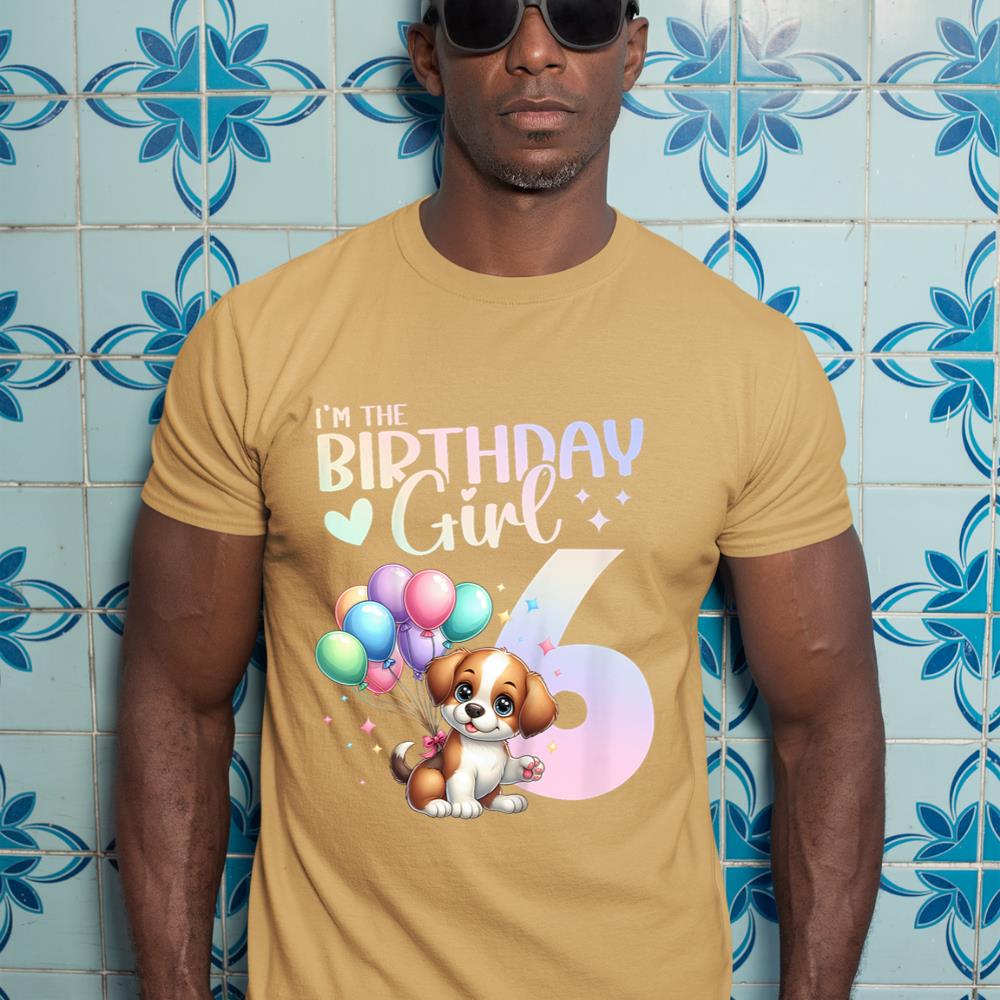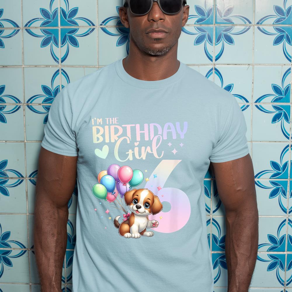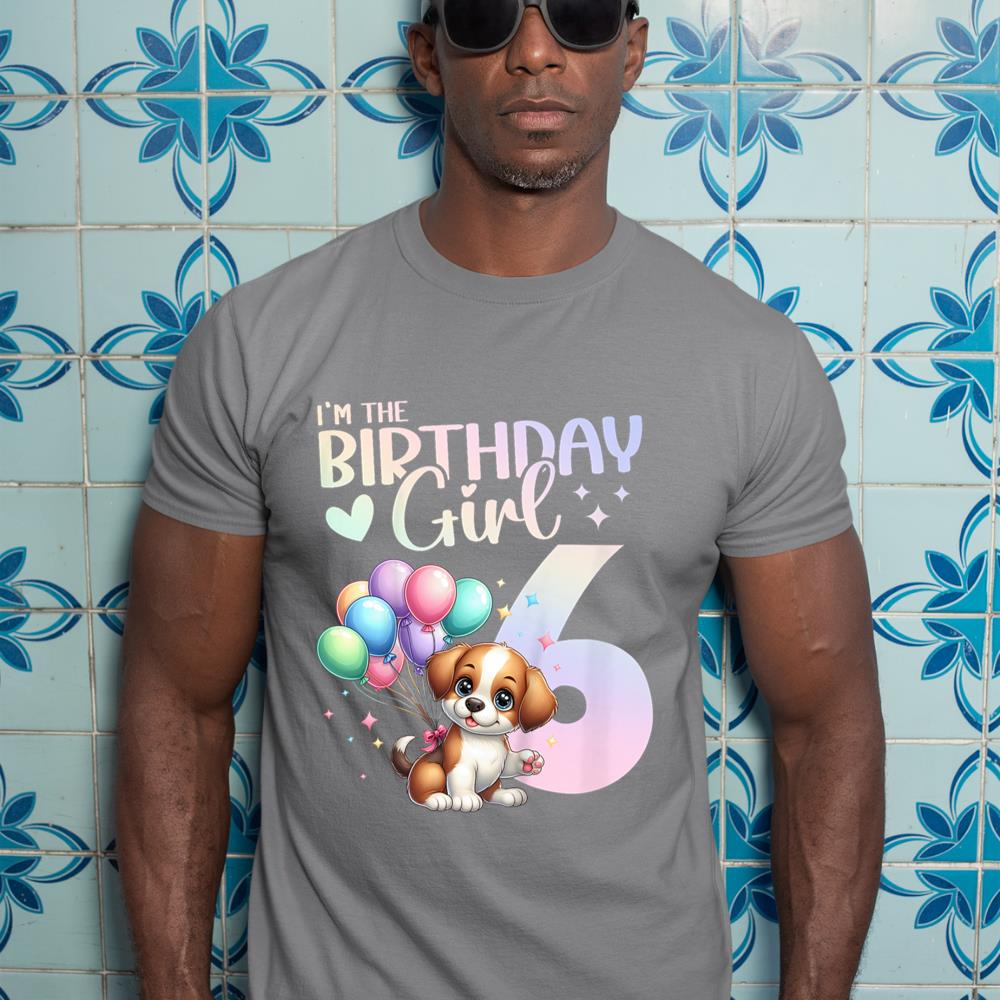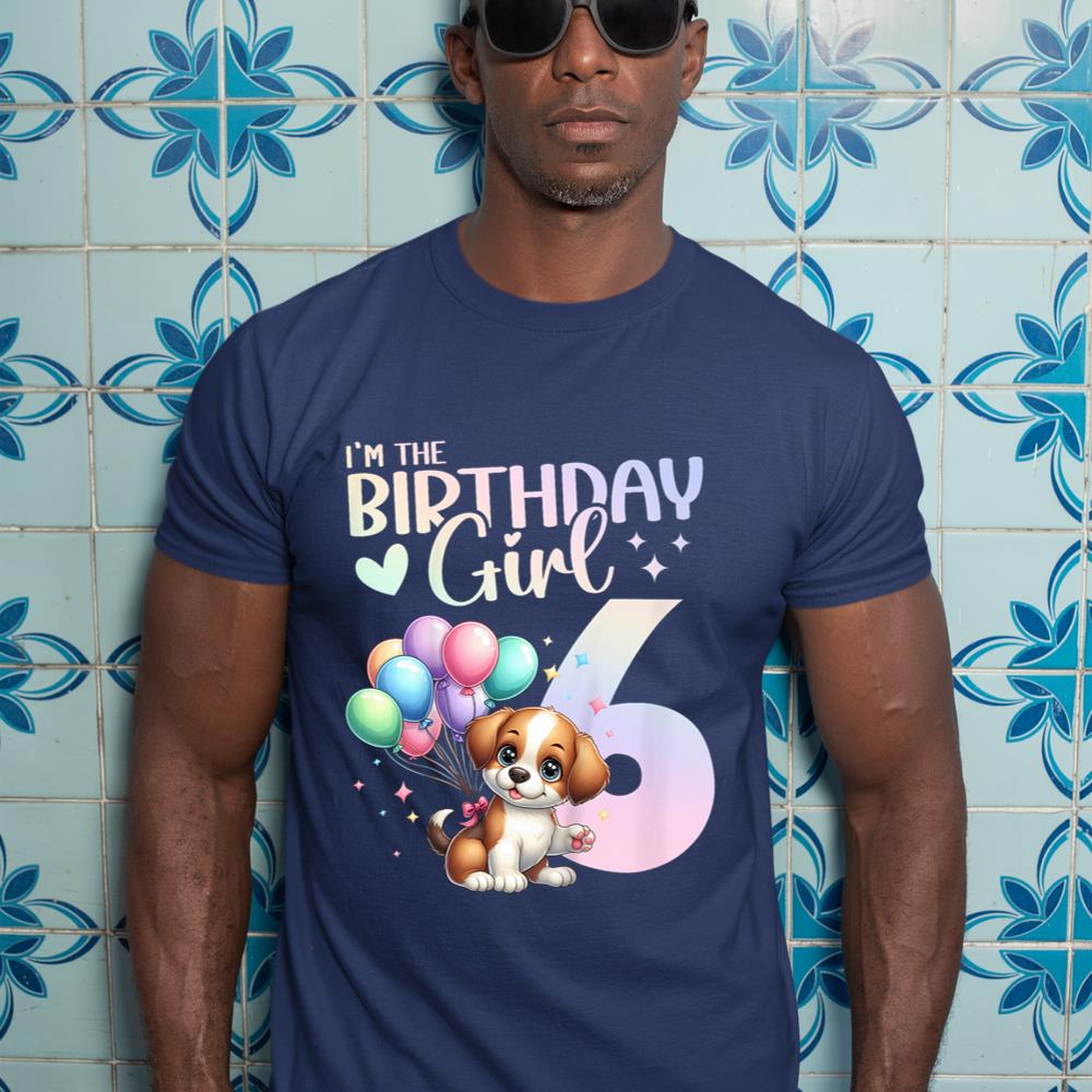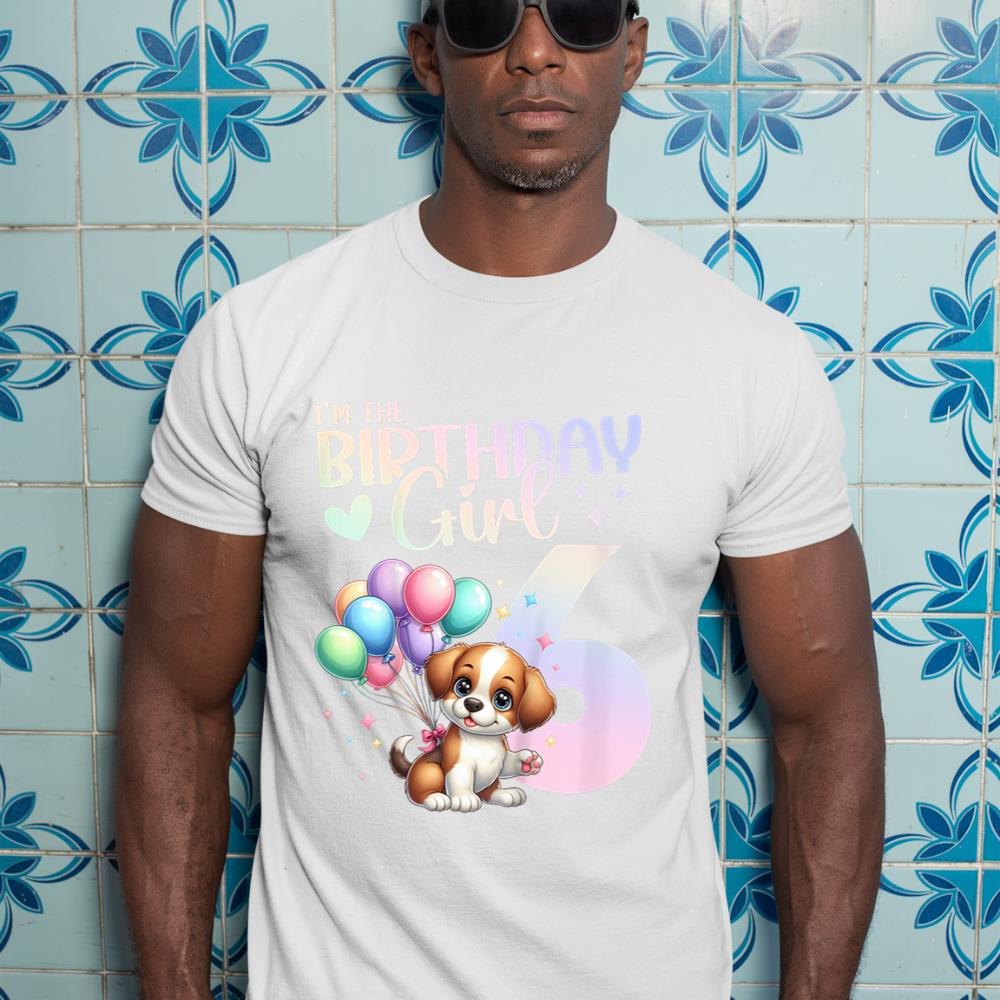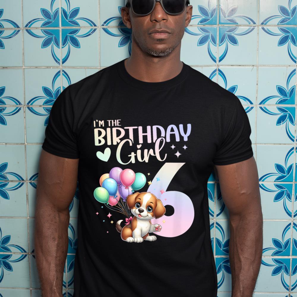 Kids 6th Birthday Girl Dog Cute 6 Years Old Six 6 Birthday T-Shirt