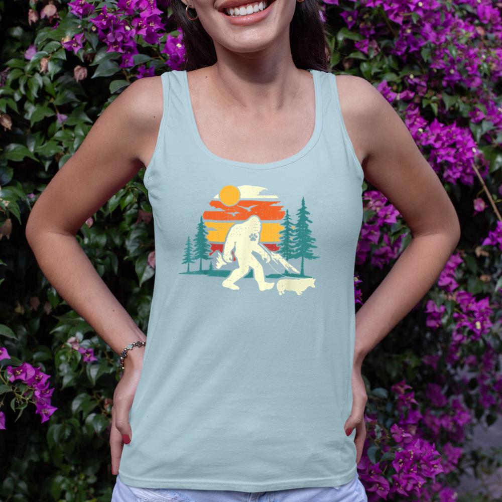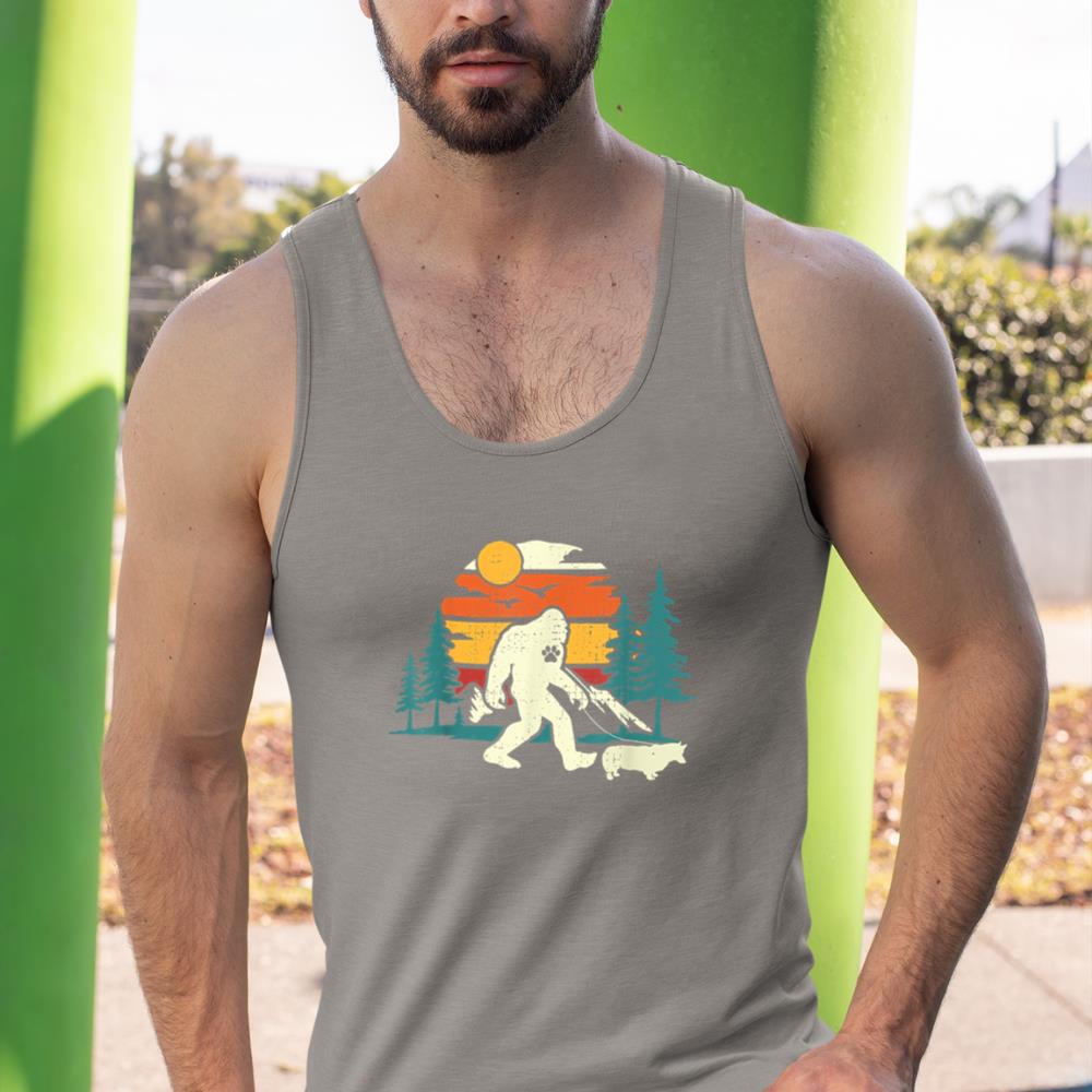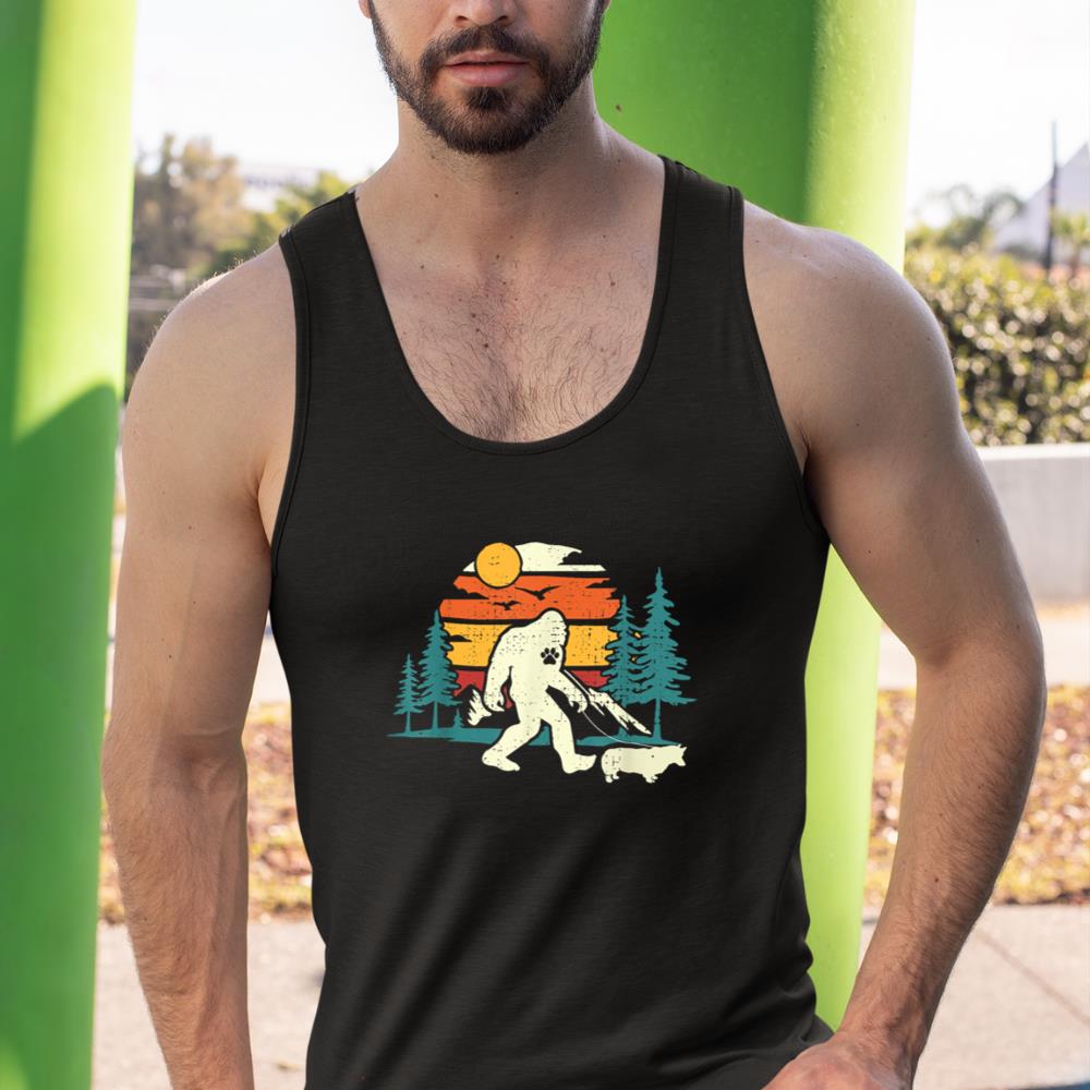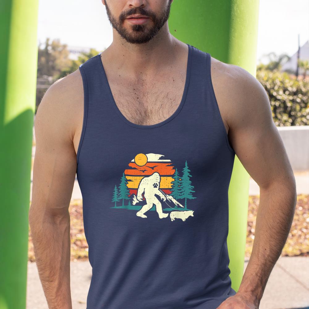 Retro Bigfoot Walking Welsh Corgi Dog Walker Sasquatch Tank Top