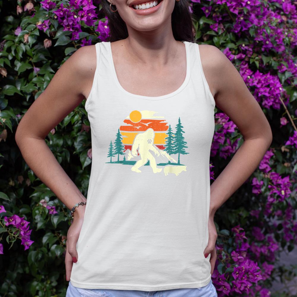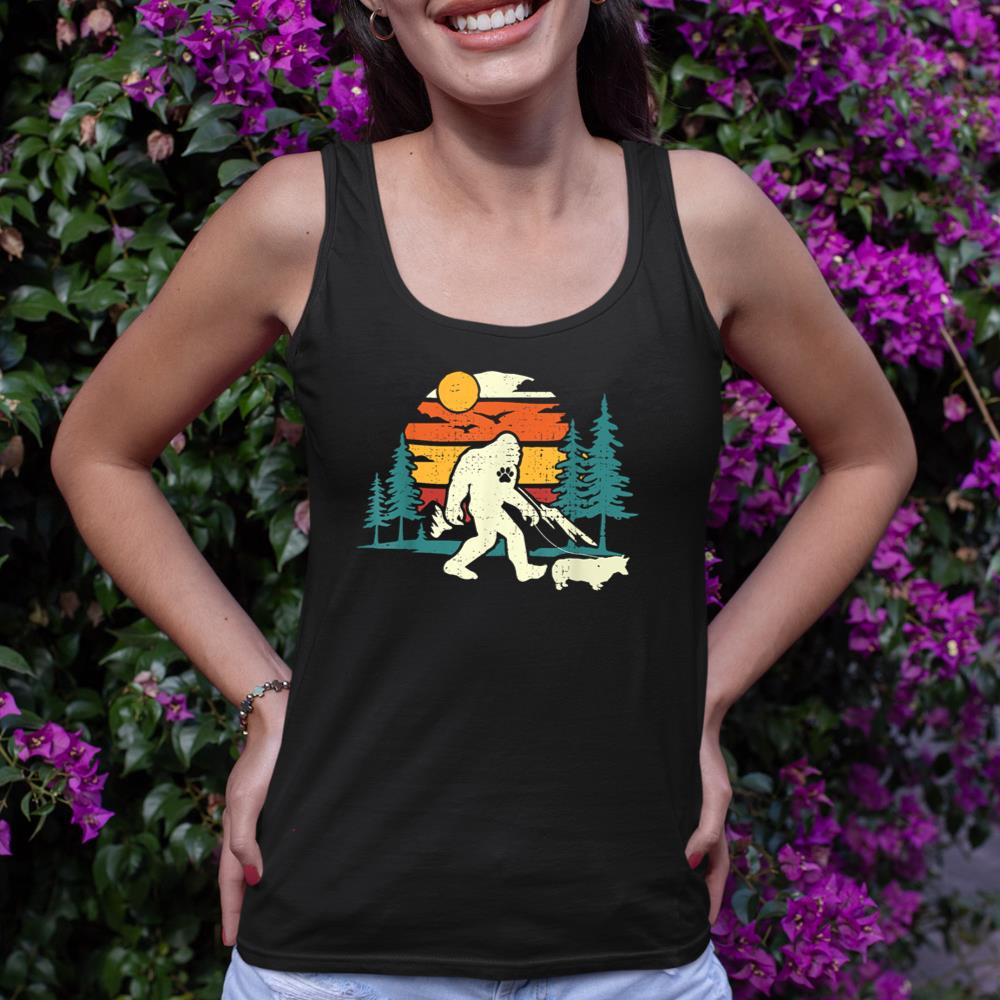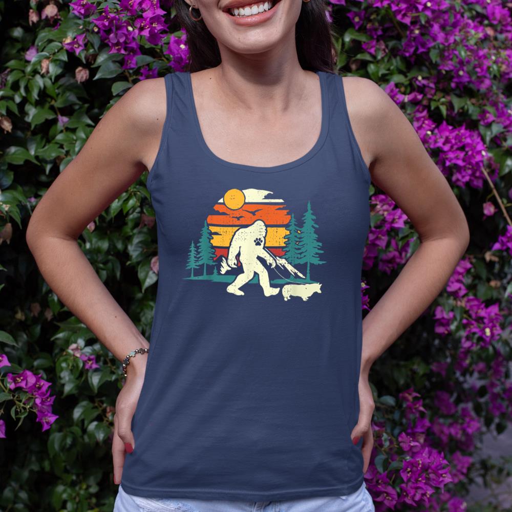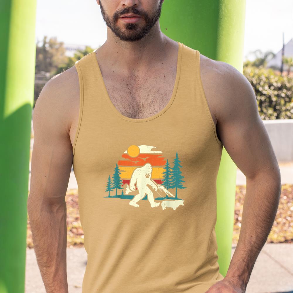 Retro Bigfoot Walking Welsh Corgi Dog Walker Sasquatch Tank Top
